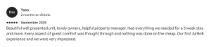 Beautiful well presented unit, lovely owners, helpful property manager. Had everything we needed for a 3 week stay and more. Every aspect of guest comfort was thought through and nothing was done on the cheap. Our first AirBnB experience and we were very impressed.