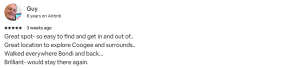 Great spot- so easy to find and get in and out of.. Great location to explore Coogee and surrounds.. Walked everywhere Bondi and back… Brilliant- would stay there again.