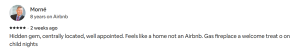 Hidden gem, centrally located, well appointed. Feels like a home not an Airbnb. Gas fireplace a welcome treat o on child nights