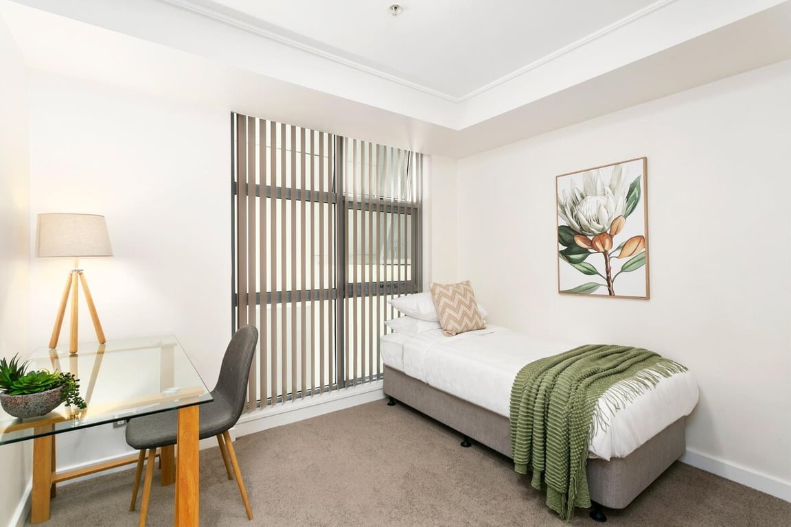 Enjoy peaceful urban living in this spacious 2-bedroom + study unit with a single bed. Quietly positioned at the rear of the building, it features generous living and dining areas flowing onto a private balcony. A separate office with storage adds flexibility for guests or working from home in comfort.