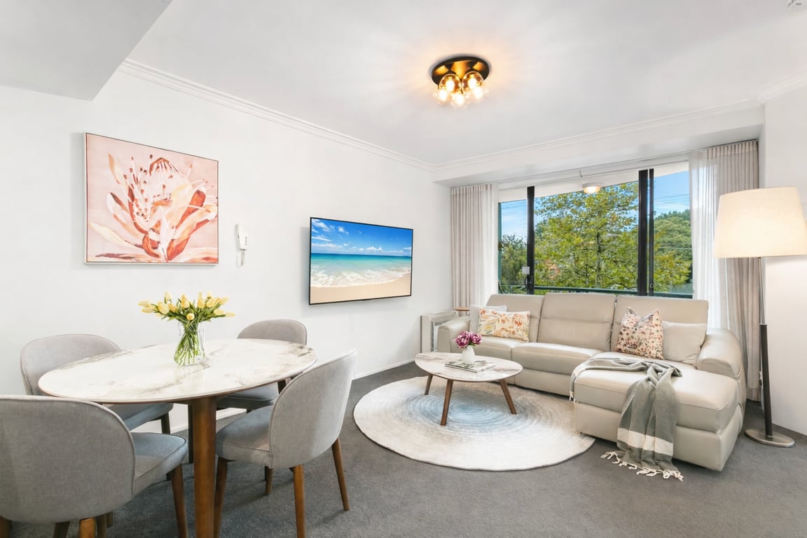 This beautifully furnished, open-plan one-bedroom apartment is ideally situated just beyond the hustle and bustle of Military Road in Cremorne. With an array of shops, restaurants, supermarkets, and cafés within walking distance, as well as excellent transport links to the city, the location offers both convenience and tranquillity.