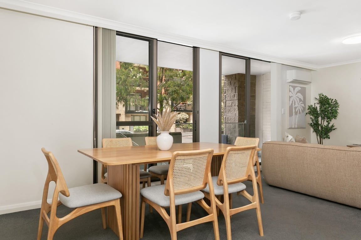 Welcome to your home away from home in Pyrmont’s Jacksons Landing precinct. This two-bedroom, two-bathroom townhouse offers 106 m² of comfortable, modern living. With a private balcony overlooking Sydney Harbour and the Anzac Bridge, secure parking for one car, and access to nearby amenities, it’s a convenient base for families, business travelers, and couples visiting Sydney.