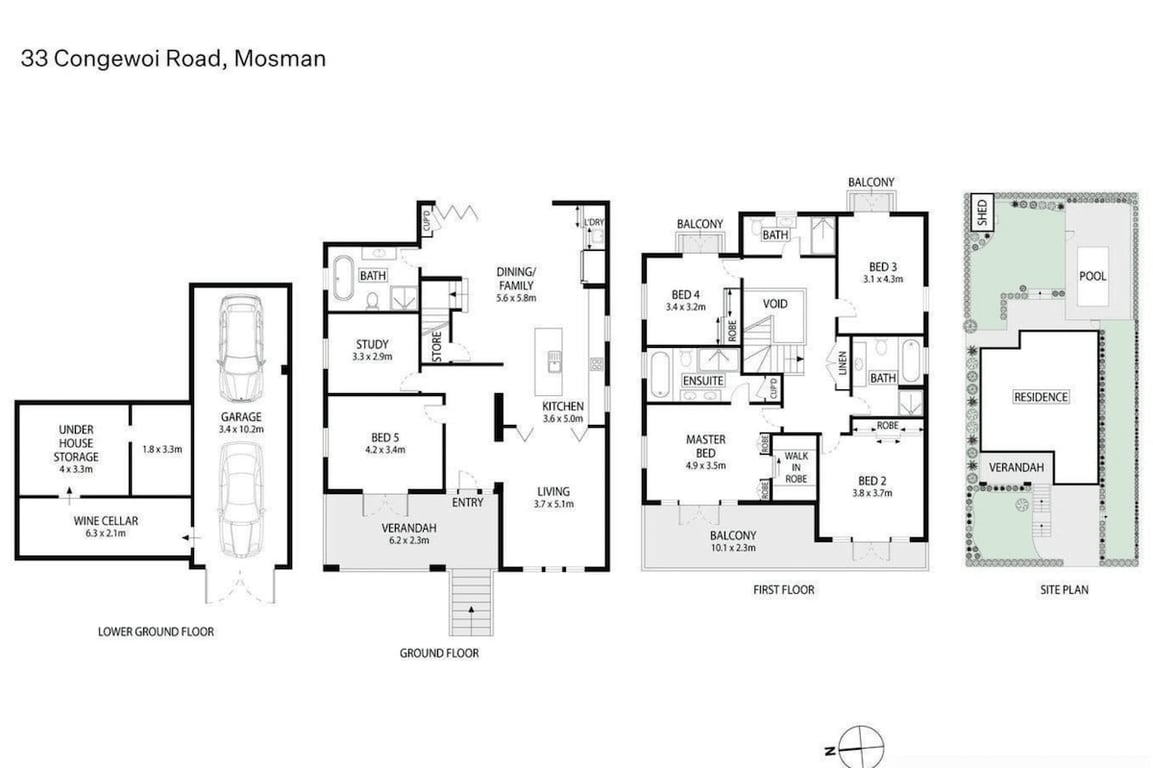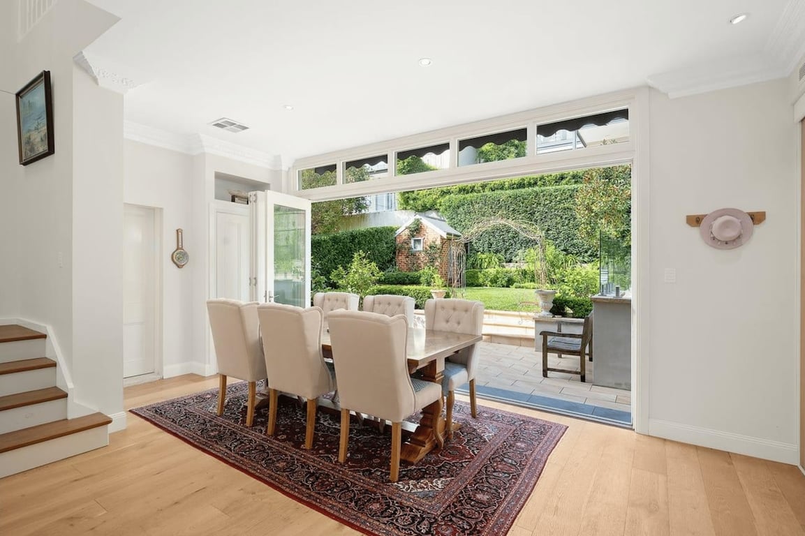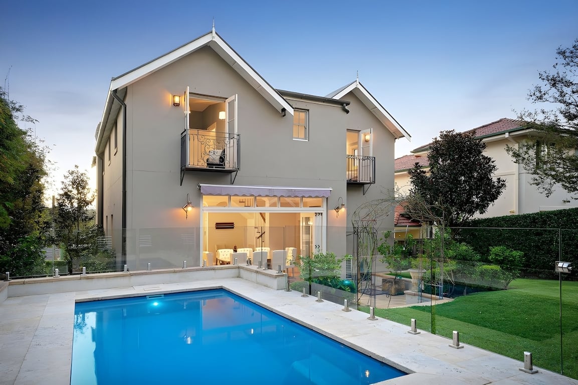 This beautiful north-facing home in Mosman is designed for relaxed living with family and friends. Spread over two levels, it offers five comfortable bedrooms, four bathrooms, and open spaces that feel calm and welcoming. The pool and garden create a private oasis, perfect for long summer days, while balconies capture soft harbour views and the warmth of the afternoon sun. Parking for two cars provided (one garaged).