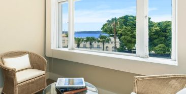 Featuring high ornate ceilings, picture rails, and delicate architectural details that frame every space. The lounge is bathed in natural light and opens to a balcony with serene views across Balmoral Beach and the lush foreshore parklands.