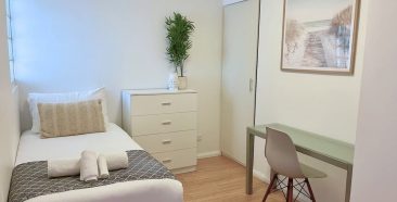 Enjoy this modern, spacious apartment on the 4th floor, filled with natural light and furnished for a comfortable stay. The main bedroom features a built-in wardrobe, while the open study area serves as a flexible second sleeping space with a single bed (note: this area is open, as shown in the floor plan).