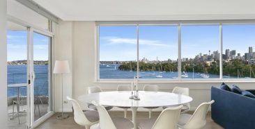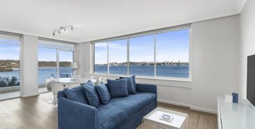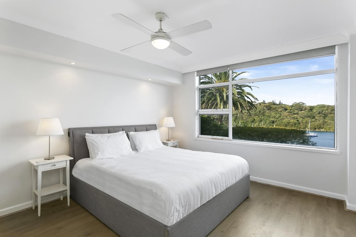 Positioned at the edge of Mosman Point, this tranquil two-bedroom apartment captures sweeping views of Sydney Harbour and the city skyline. Inside, the interiors are light-filled and quietly refined, with every room — from the open living space to each bedroom — drawing the eye to the water. Soft linen, blackout blinds, and thoughtful touches throughout invite you to slow down.