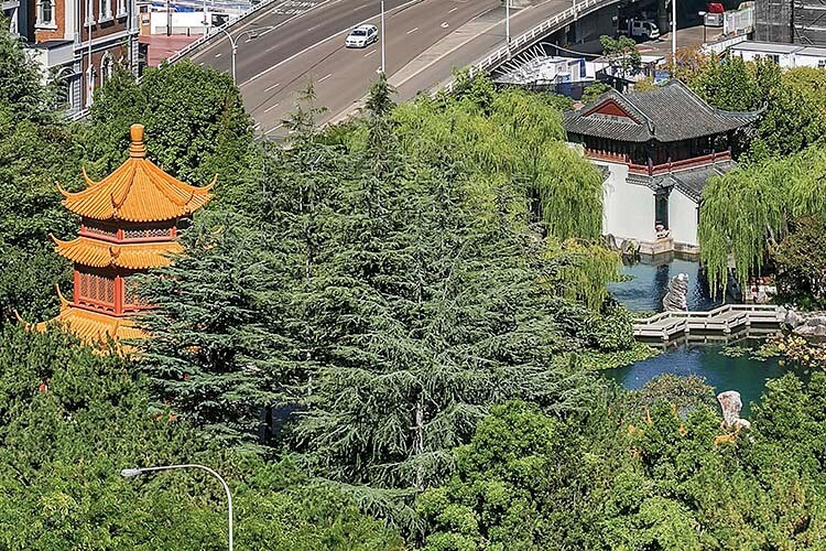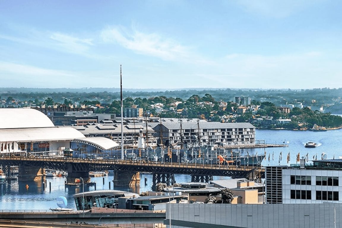 Modern Sydney apartment with views of the Chinese Gardens and Darling Harbour. Fully furnished and air-conditioned two-bedroom / two-bathroom apartment, with an extra single bed in a converted study.