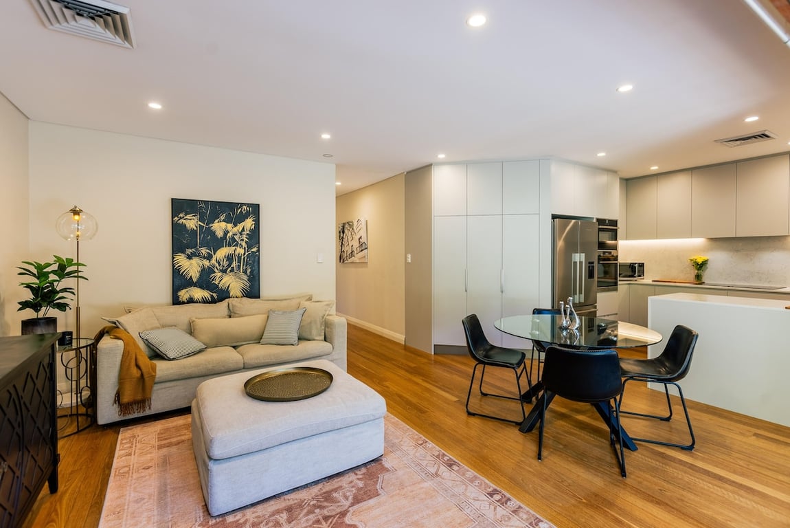 A fully furnished executive family home, directly opposite beautiful leafy Halstrom Park, this stylishly appointed semi-detached home offers space, comfort and lifestyle in one of North Sydney’s most convenient locations. With the Incinerator Café and Willoughby Leisure Centre just down the road, and an easy five-minute stroll to the express bus reaching the city in approximately ten minutes, the position is ideal for families, executives and relocation stays.